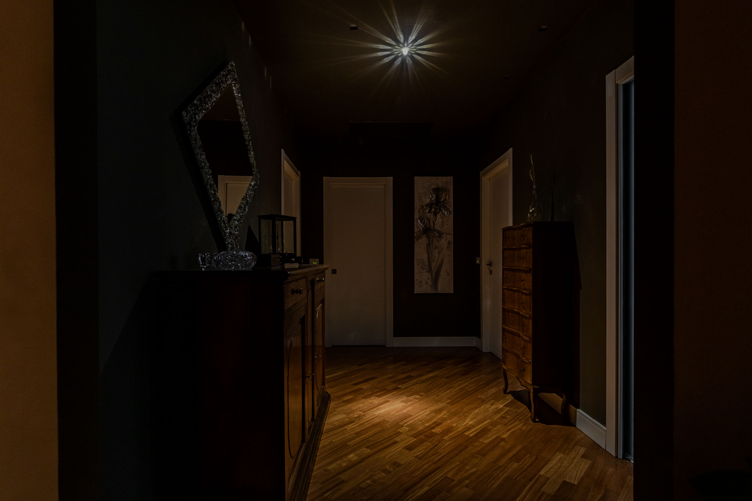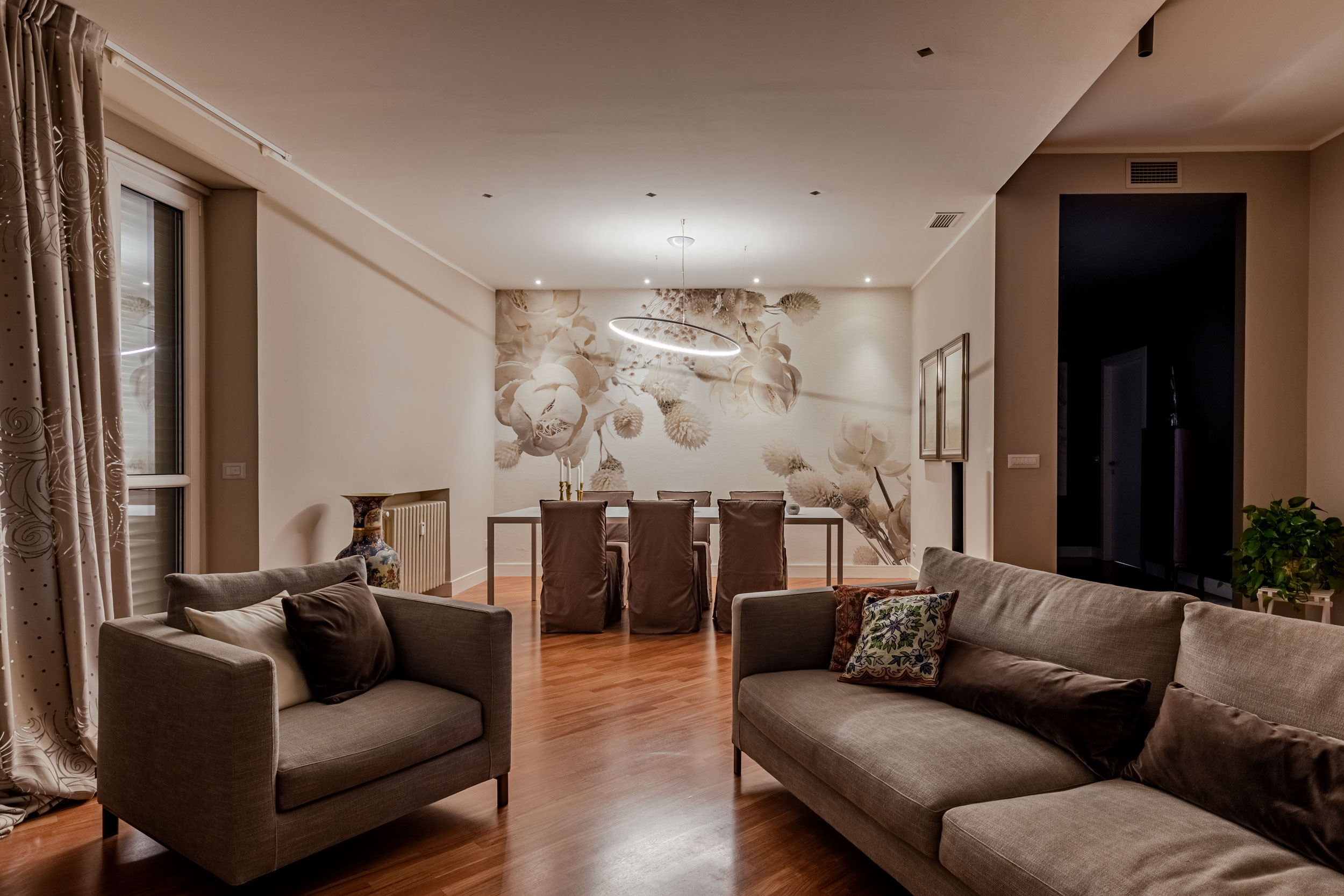 L’illuminazione artificiale è stata studiata per valorizzare le funzioni e le atmosfere: soluzioni tecniche e minimali per corridoi, sospensioni decorative per le aree più rappresentative, in un equilibrio tra funzionalità e espressività. Il risultato è un’abitazione che interpreta con sensibilità il passato e lo proietta nel presente, dove ogni scelta – spaziale, materica, luminosa – contribuisce a costruire un racconto coerente e personale dell’abitare.