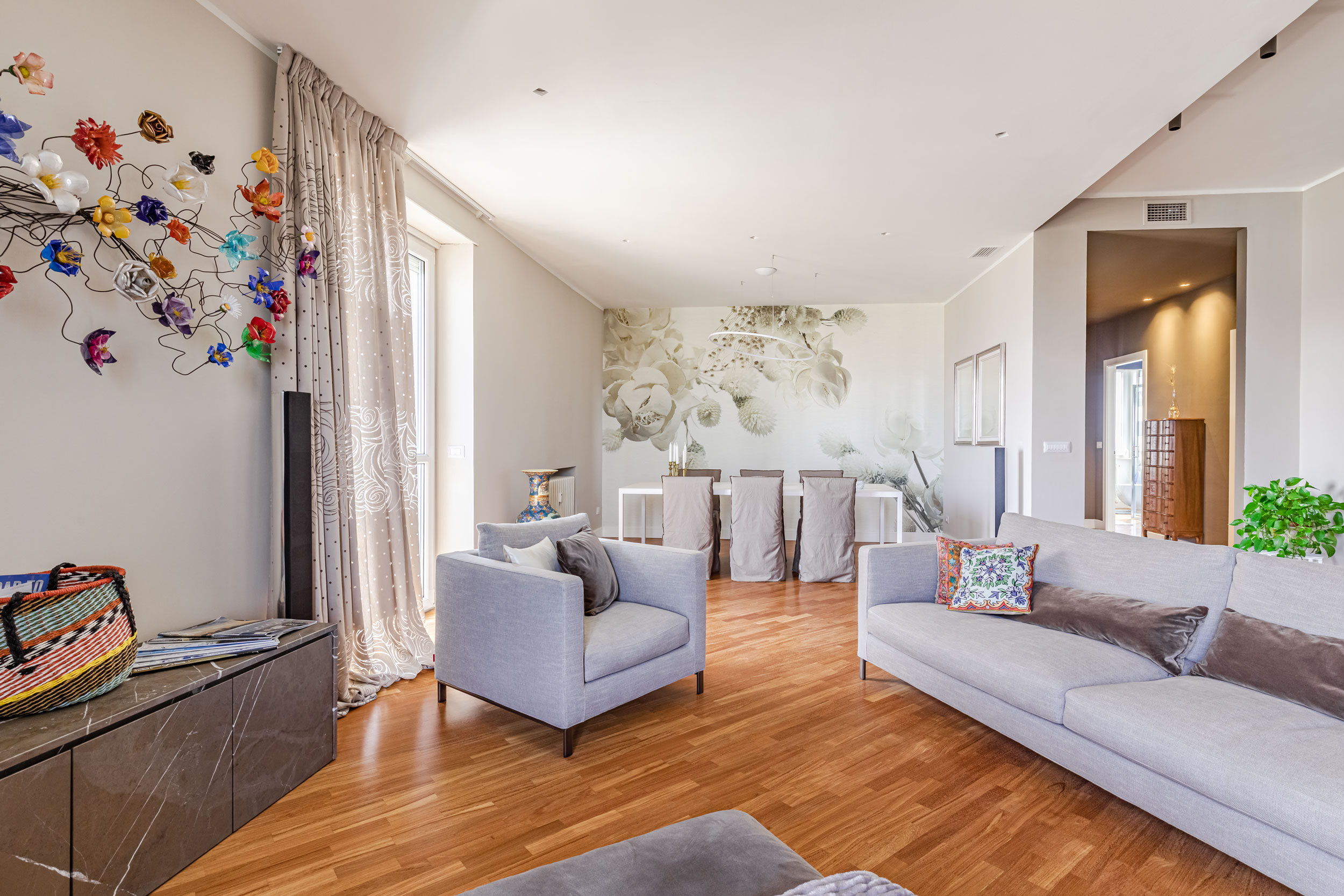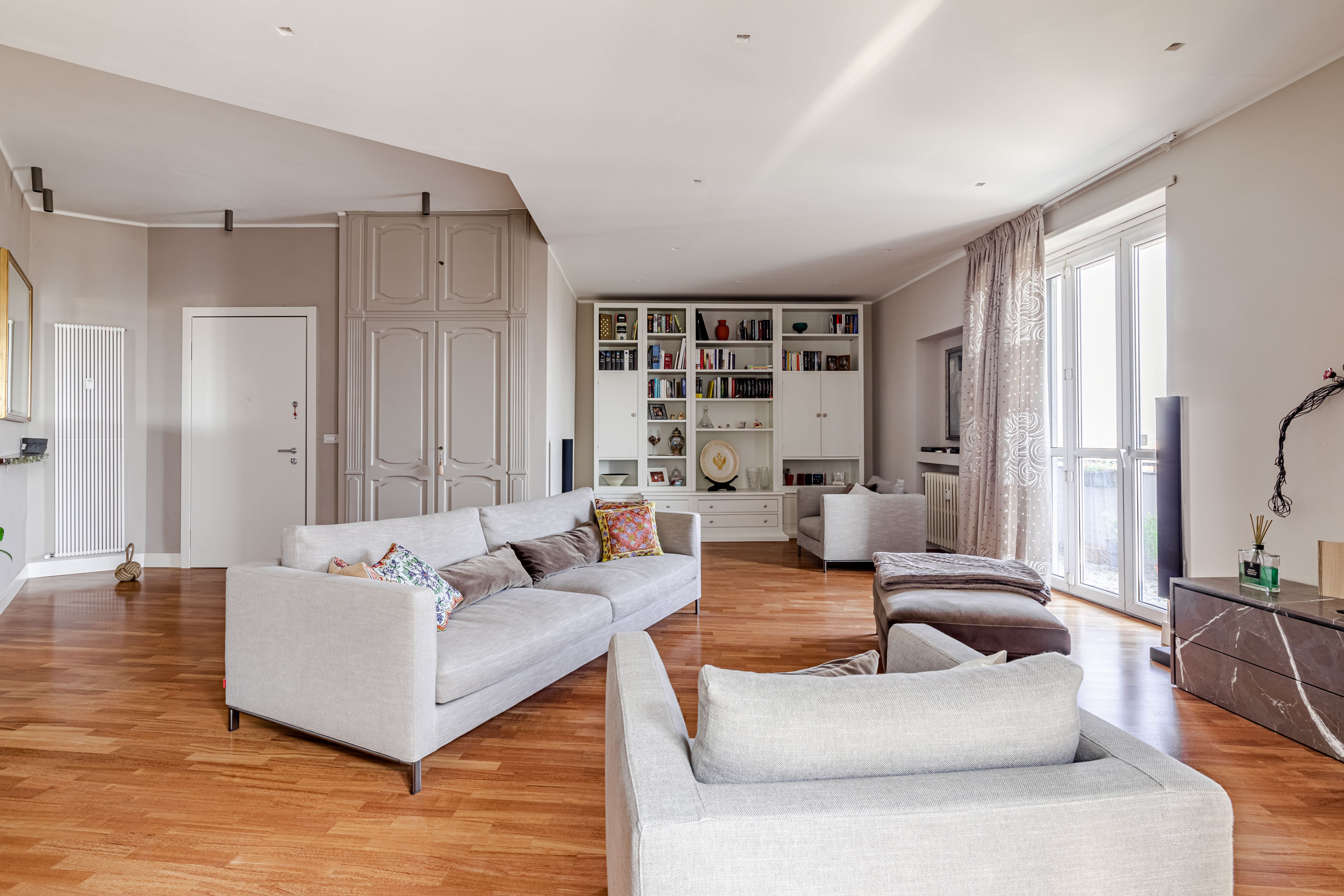 All’ultimo piano di un edificio costruito tra gli anni ’60 e ’70, in posizione angolare e dominante sull’isolato urbano, un attico di circa 150 mq è stato oggetto di una ristrutturazione radicale che ha saputo reinterpretare lo spirito originario dell’architettura con un linguaggio contemporaneo, funzionale ed estetico.